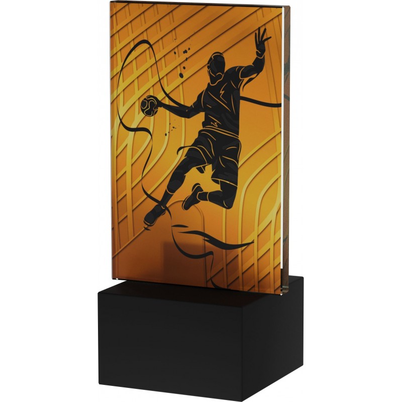 Statuetka - piłka ręczna, w wersji ekonomicznej, stworzona przy pomocy druku przestrzennego na szkle o grubości 6 mm. Wysokość wraz z kamienną podstawą to 12 cm. Opcjonalnie istnieje możliwość personalizacji nagrody dodając tabliczkę na podstawie.