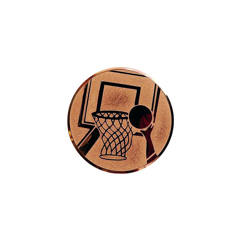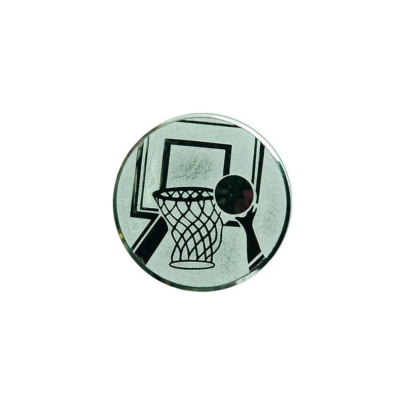 Emblemat aluminiowy koszykówka, dostępny w trzech kolorach i dwóch średnicach. Stosowany jako dodatek do medali lub pucharów.