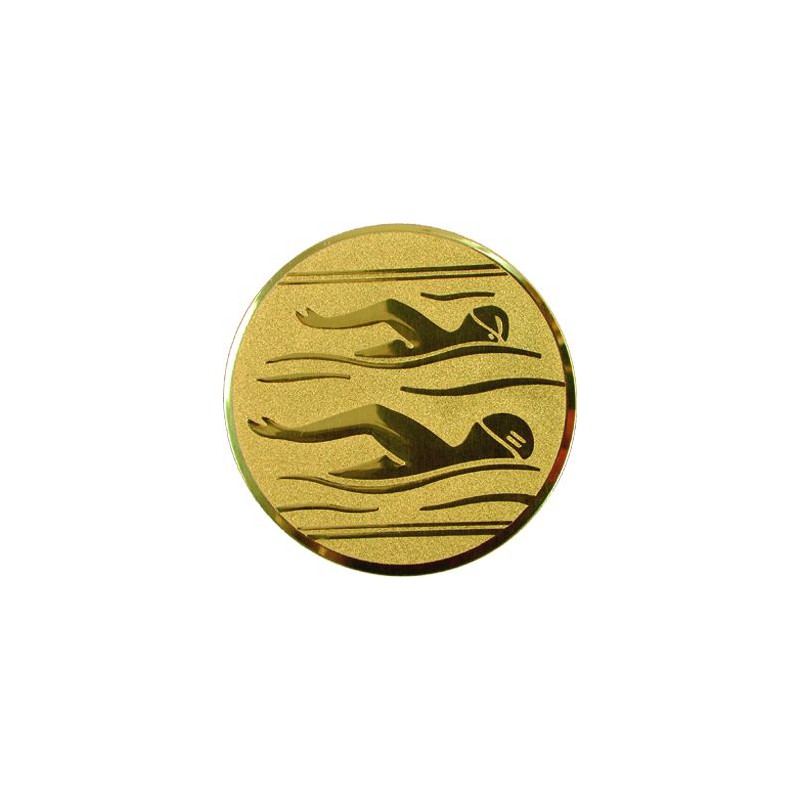 Emblemat aluminiowy pływanie, dostępny w dwóch średnicach. Stosowany jako dodatek do medali lub pucharów.