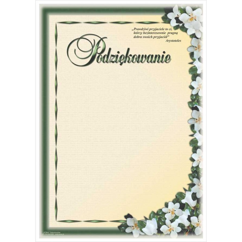 Dyplom podziękowanie, format A4, papier o gramaturze 250 g nadający się do drukarek laserowych.