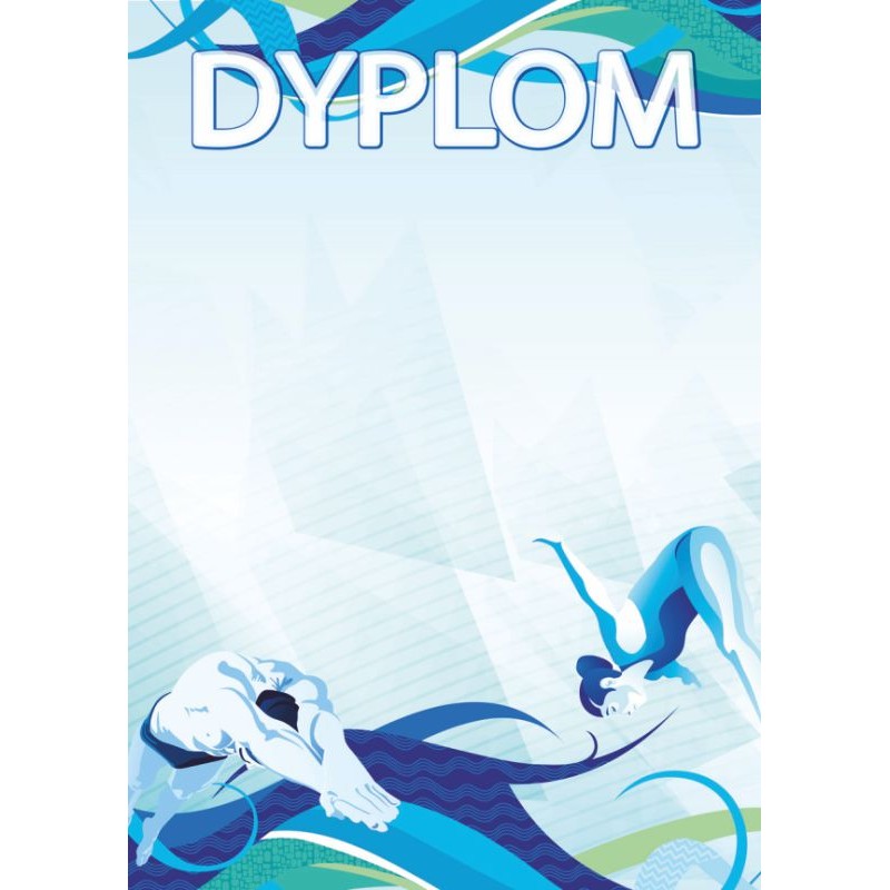 Dyplom pływacki, format A4, papier matowy o gramaturze 250 g nadający się do drukarek atramentowych.
