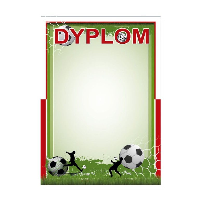Dyplom piłka nożna, format A4, papier matowy o gramaturze 250 g nadający się do drukarek atramentowych.