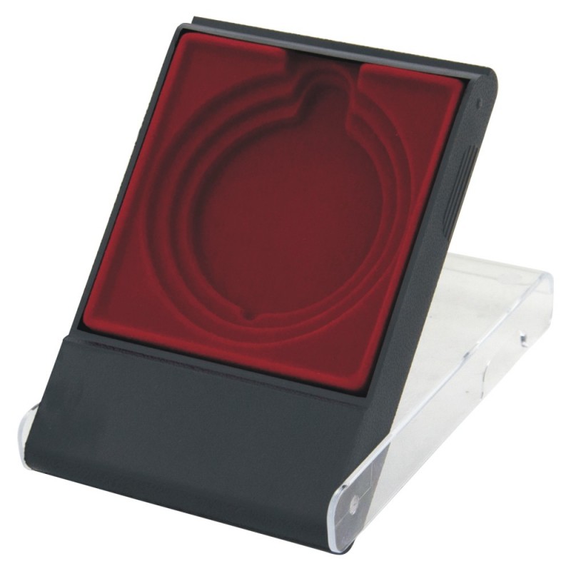 Uniwersalne plastikowe etui do medalu - wyściółka w kolorze bordowym - średnice 50, 60 i 70 mm, wymiary: 87x123 mm