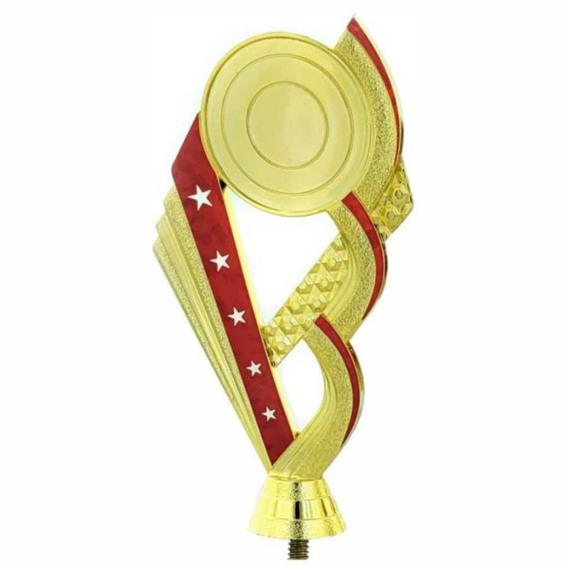 Ogólna figura plastikowa w kolorze złotym z elementami koloru czerwonego, wys. 16,5 cm. Miejsce na emblemat o średnicy 25 lub 50 mm. Do montażu na postumentach