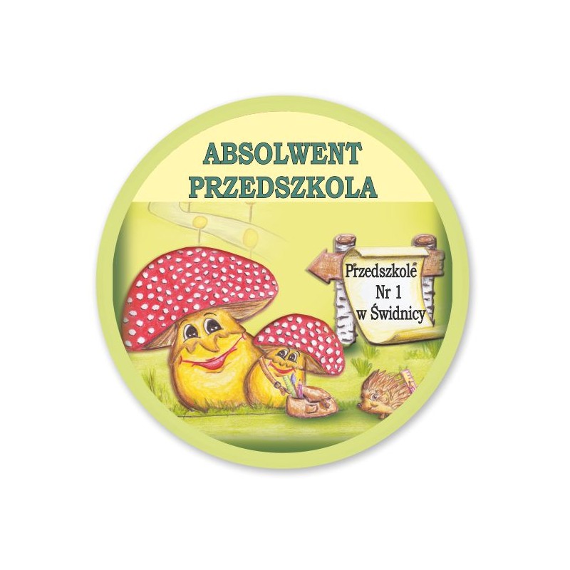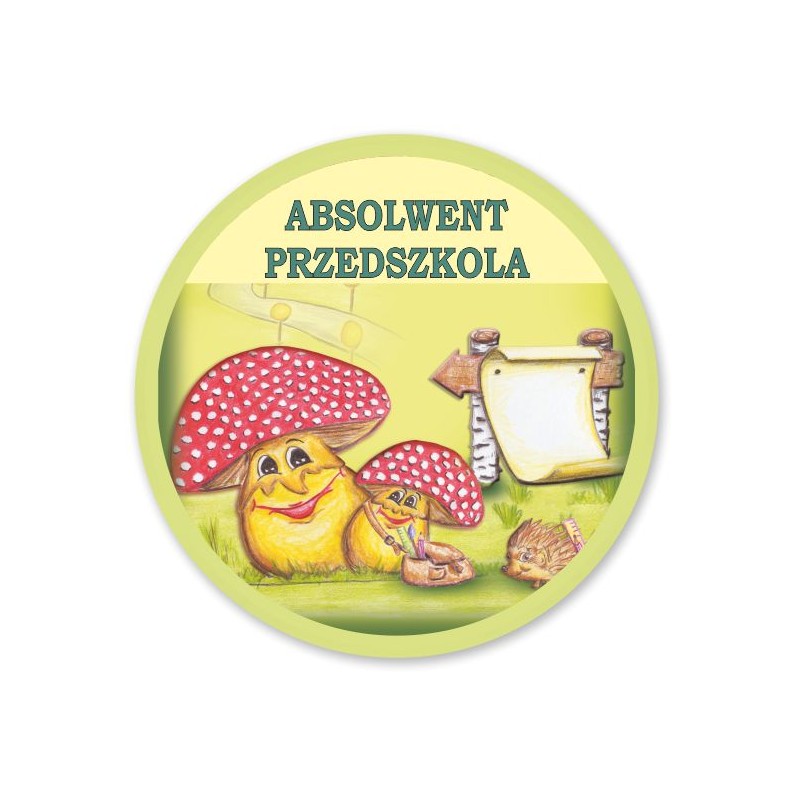Odznaka "absolwent przedszkola", średnica 56 mm. Możliwość zmiany lub dodania napisu.
