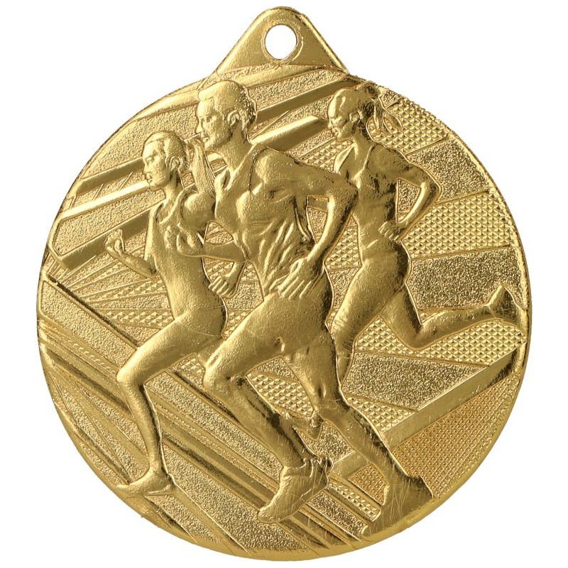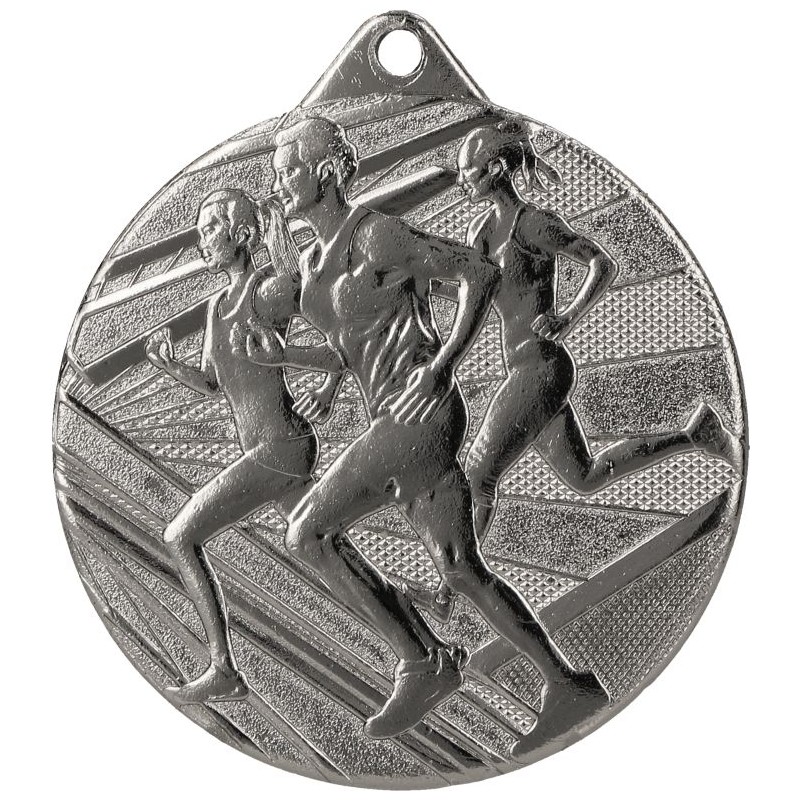 Medal stalowy - biegi, średnica 50 mm, grubość 2 mm, "oczko" do mocowania wstążki. Możliwość znakowania na rewersie - do wyboru trzy techniki. Zobacz OPIS