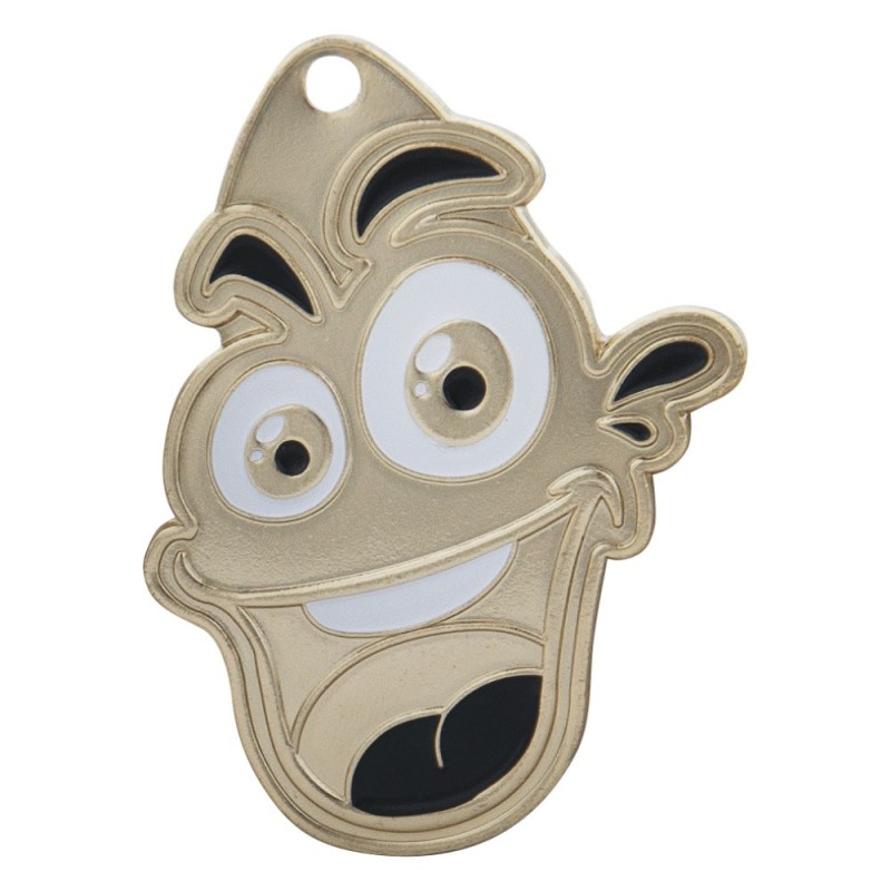 Złoty medal stalowy - uśmiech, wymiary: 51x40 mm, grubość 2 mm. "oczko" do mocowania wstążki. Możliwość znakowania na rewersie.