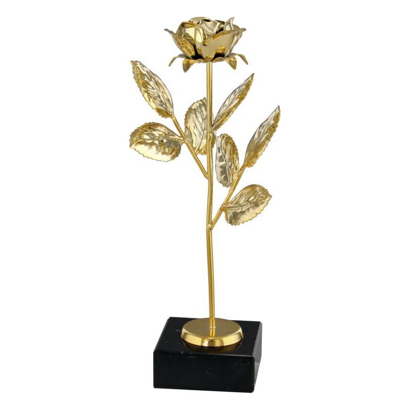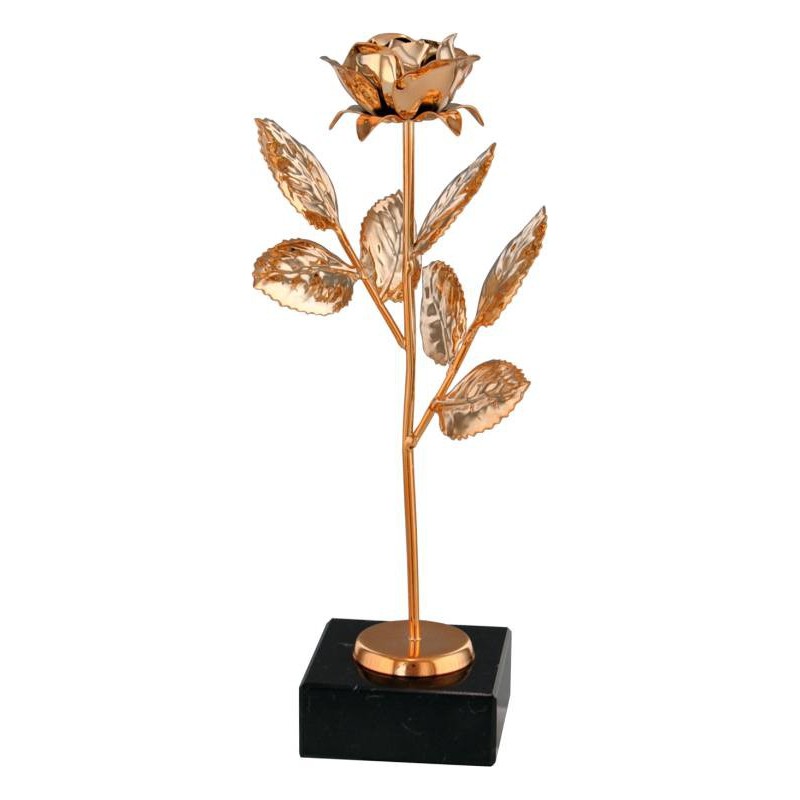 Statuetka metalowa róża wys. 27,5 cm dostępna w trzech wersjach kolorystycznych - złoto, srebro, miedź (metalizacja - połysk). Idealna na prezent czy podziękowanie. Pakowana w biały karton. Istnieje możliwość domówienia tabliczki z napisem.