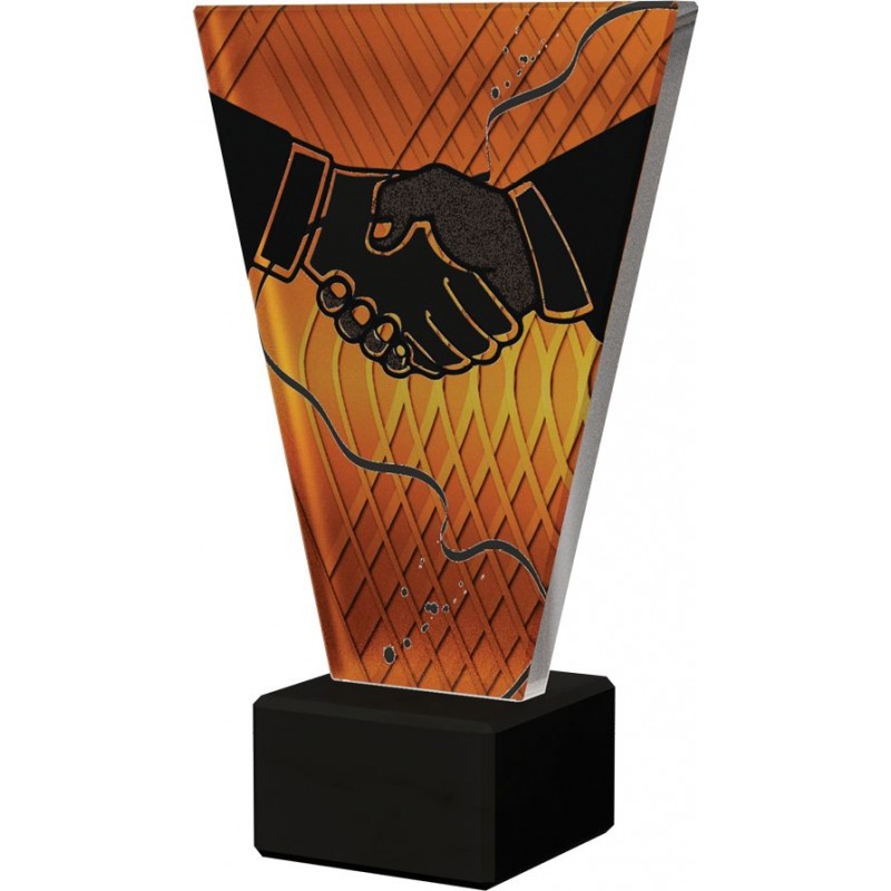 Statuetka uścisk dłoni - podziękowanie, występuje w czterech wysokościach. Grubość szkła 10 mm. Nowoczesny design oraz forma przestrzenna statuetki sprawiają, że trofeum to wyróżnia się spośród innych znajdujących się na rynku. Możliwość personalizacji nagrody poprzez umieszczenie wygrawerowanej tabliczki. TERMIN REALIZACJI DO 7 DNI ROBOCZYCH.