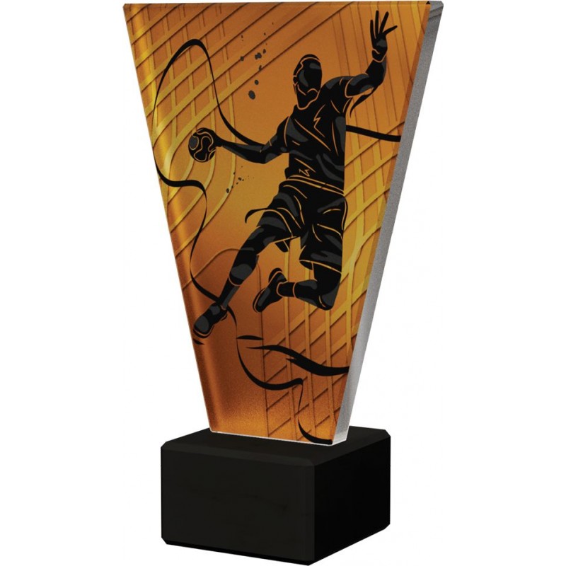 Statuetka piłka ręczna, występuje w czterech wysokościach. Grubość szkła 10 mm. Nowoczesny design oraz forma przestrzenna statuetki sprawiają, że trofeum to wyróżnia się spośród innych znajdujących się na rynku. Możliwość personalizacji nagrody poprzez umieszczenie wygrawerowanej tabliczki. TERMIN REALIZACJI DO 7 DNI ROBOCZYCH.