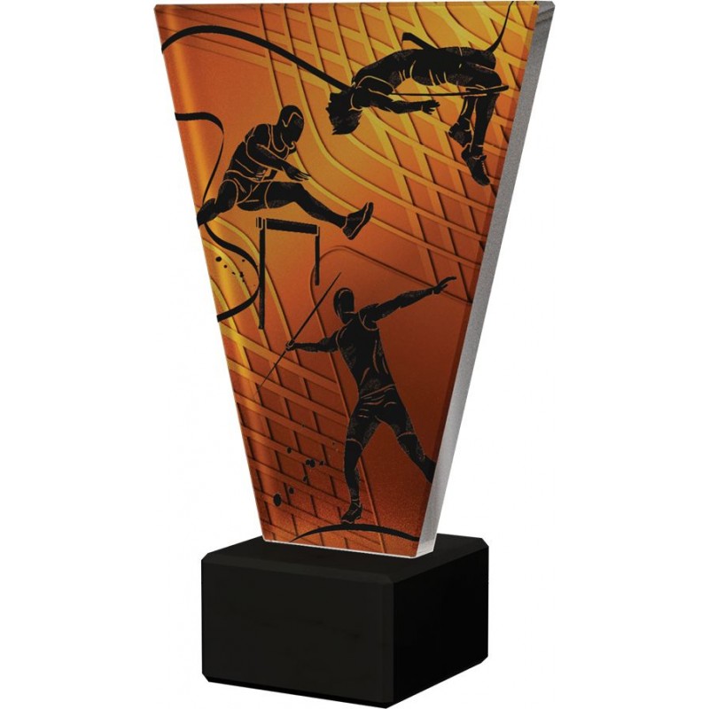 Statuetka lekkoatletyka, występuje w czterech wysokościach. Grubość szkła 10 mm. Nowoczesny design oraz forma przestrzenna statuetki sprawiają, że trofeum to wyróżnia się spośród innych znajdujących się na rynku. Możliwość personalizacji nagrody poprzez umieszczenie wygrawerowanej tabliczki. TERMIN REALIZACJI DO 7 DNI ROBOCZYCH.