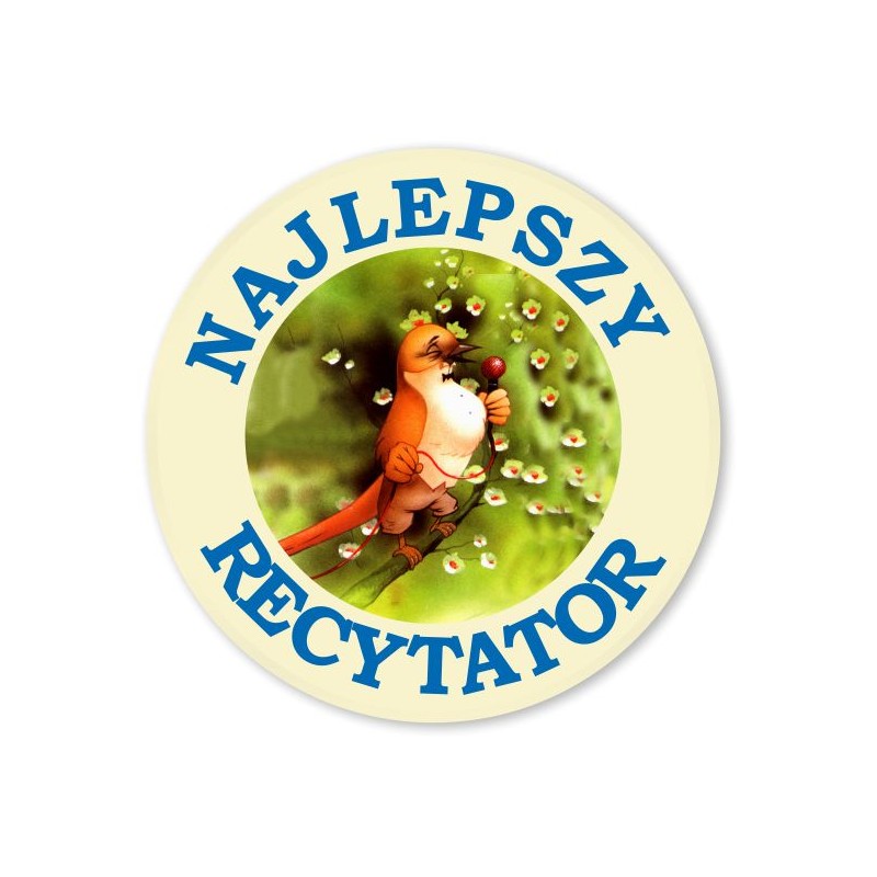 Odznaka najlepszy recytator, średnica 56 mm. Możliwość zmiany napisów.