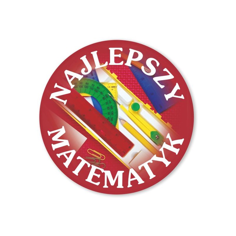Odznaka najlepszy matematyk, średnica 56 mm. Możliwość zmiany napisów.